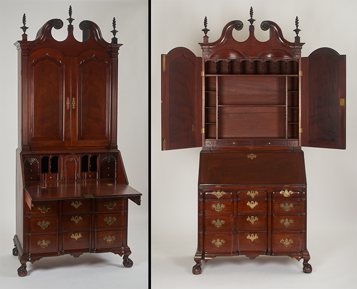 Left: the desk. Right: the bookcase. Desk and Bookcase, 1765–1775. Unknown maker, American. Mahogany. Gail–Oxford Collection. The Huntington Library, Art Collections, and Botanical Gardens.