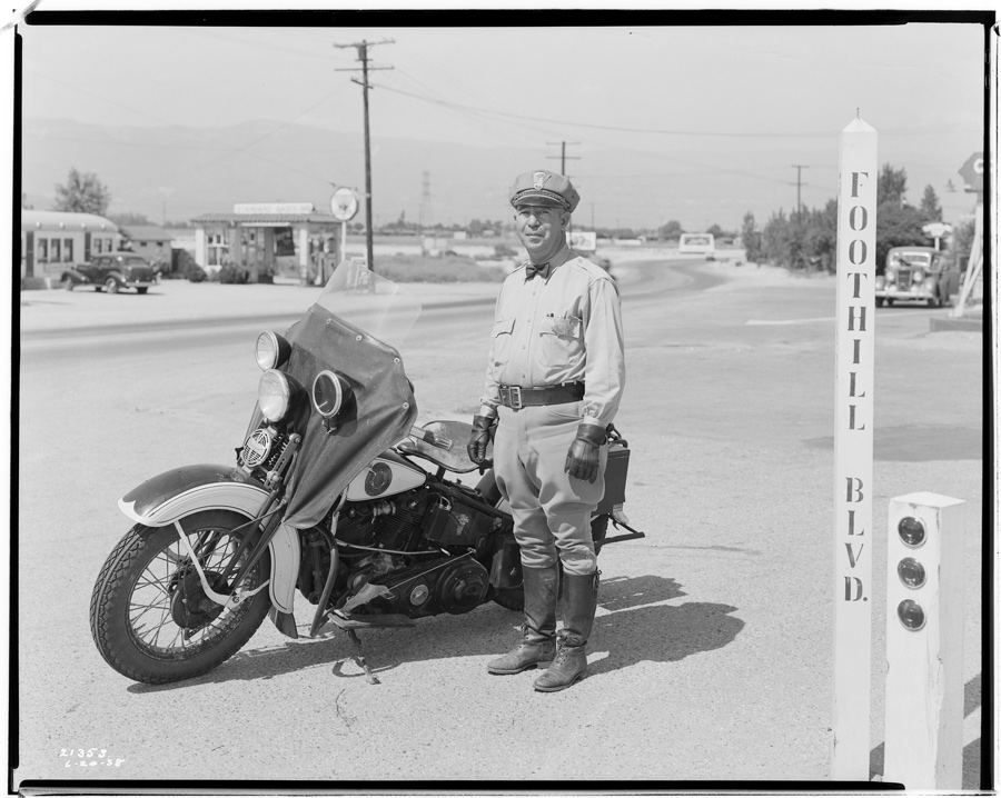 G. Haven Bishop, “Safety First.” Motorcycle officer, San Bernardino, June 1938. Huntington Library, Art Collections, and Botanical Gardens.